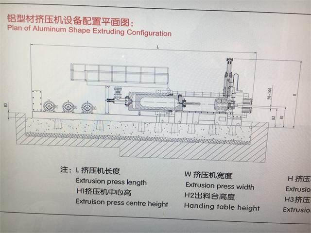 鋁型材擠壓機設(shè)備配置平面如圖1-1,XJ系列鋁型材擠壓機主要技術(shù)參數(shù)如圖1-2